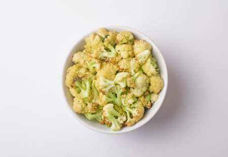 - Coloca la coliflor en la cesta de la freidora de aire sin amontonar.